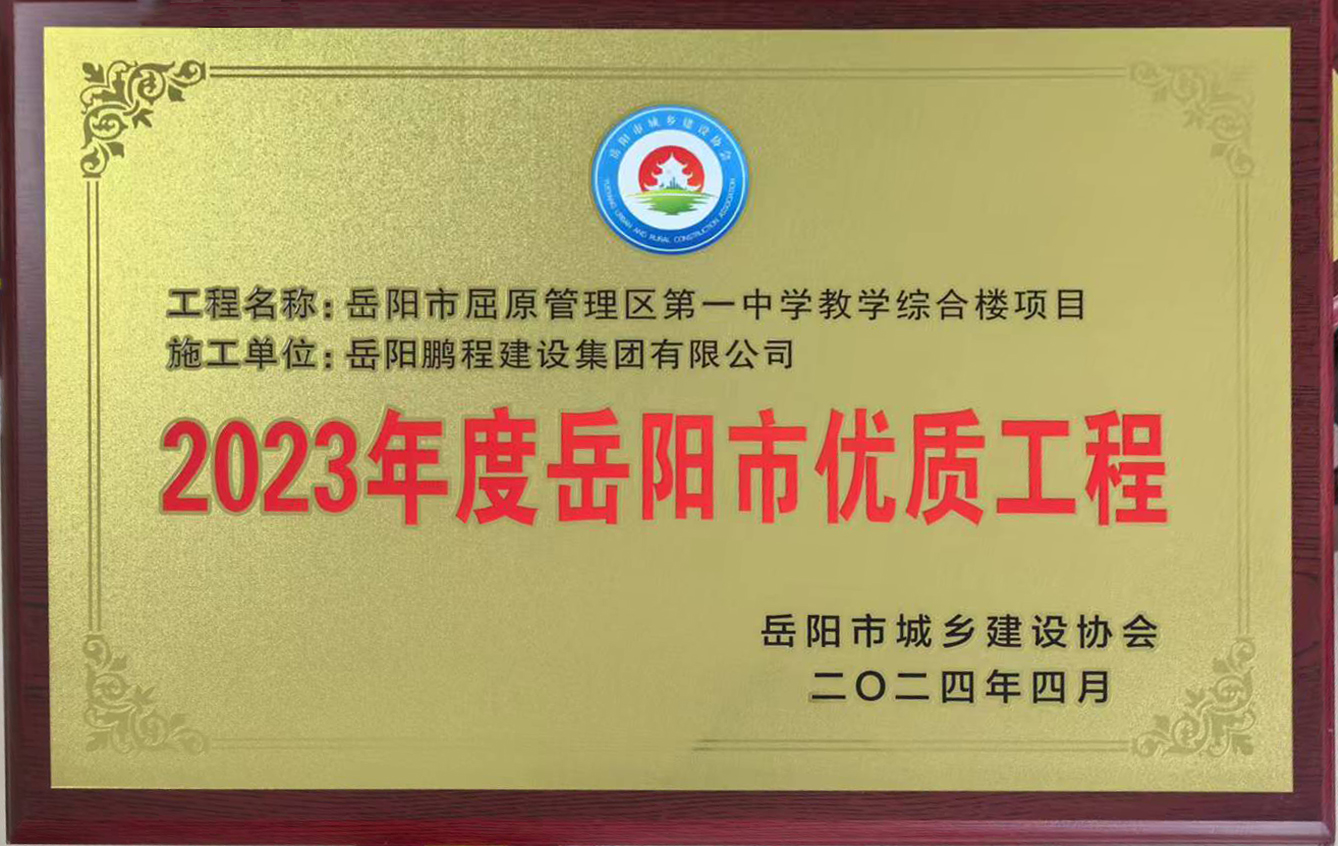 2023年度岳陽市優(yōu)質(zhì)工程--岳陽市屈原管理區(qū)第一中學(xué)教學(xué)樓綜合樓項目